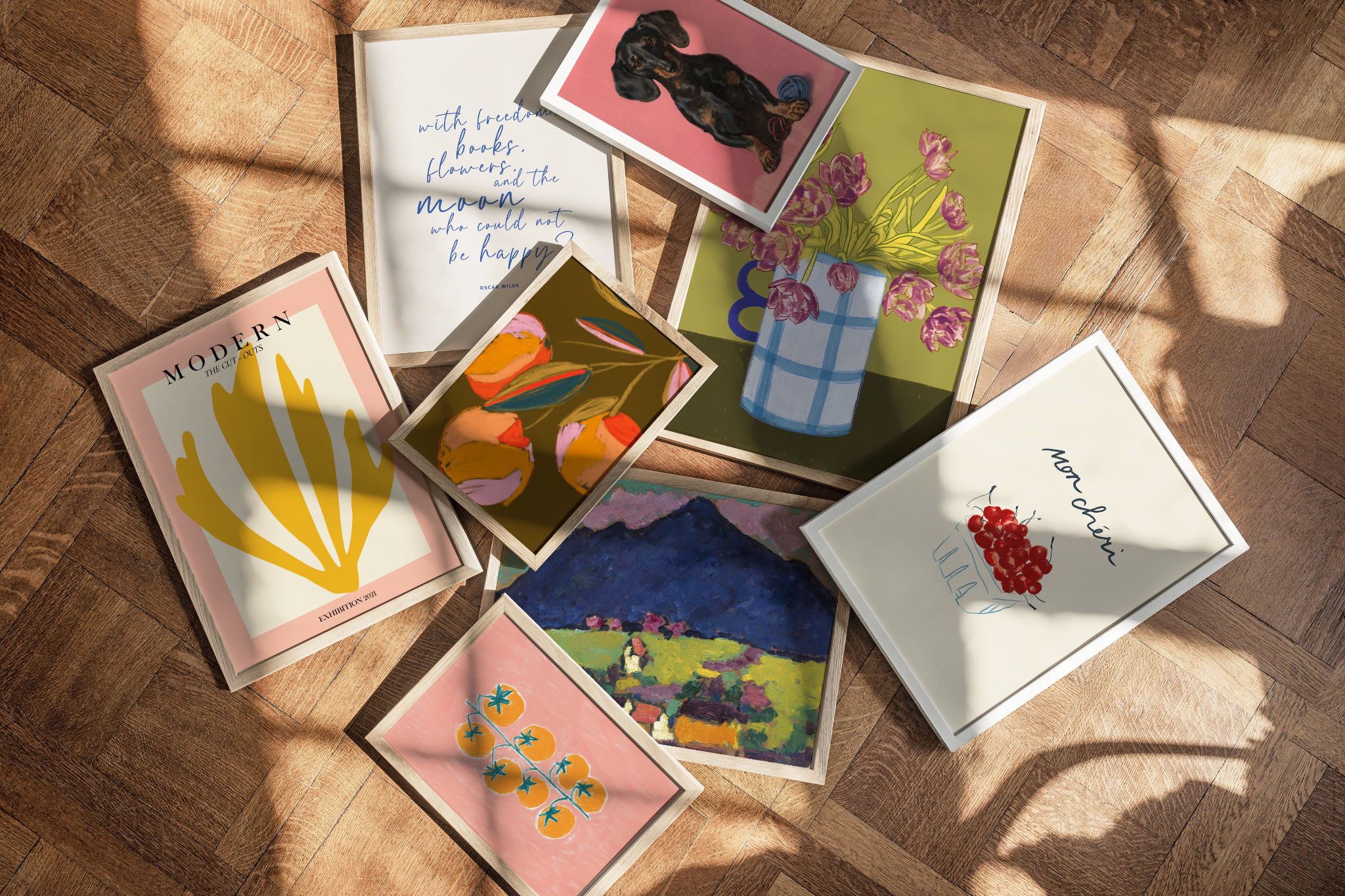 Pink Poppies in Vase Art Print, Floral Wall Art, Deep Red Background, Botanical Still Life